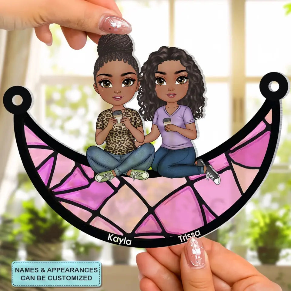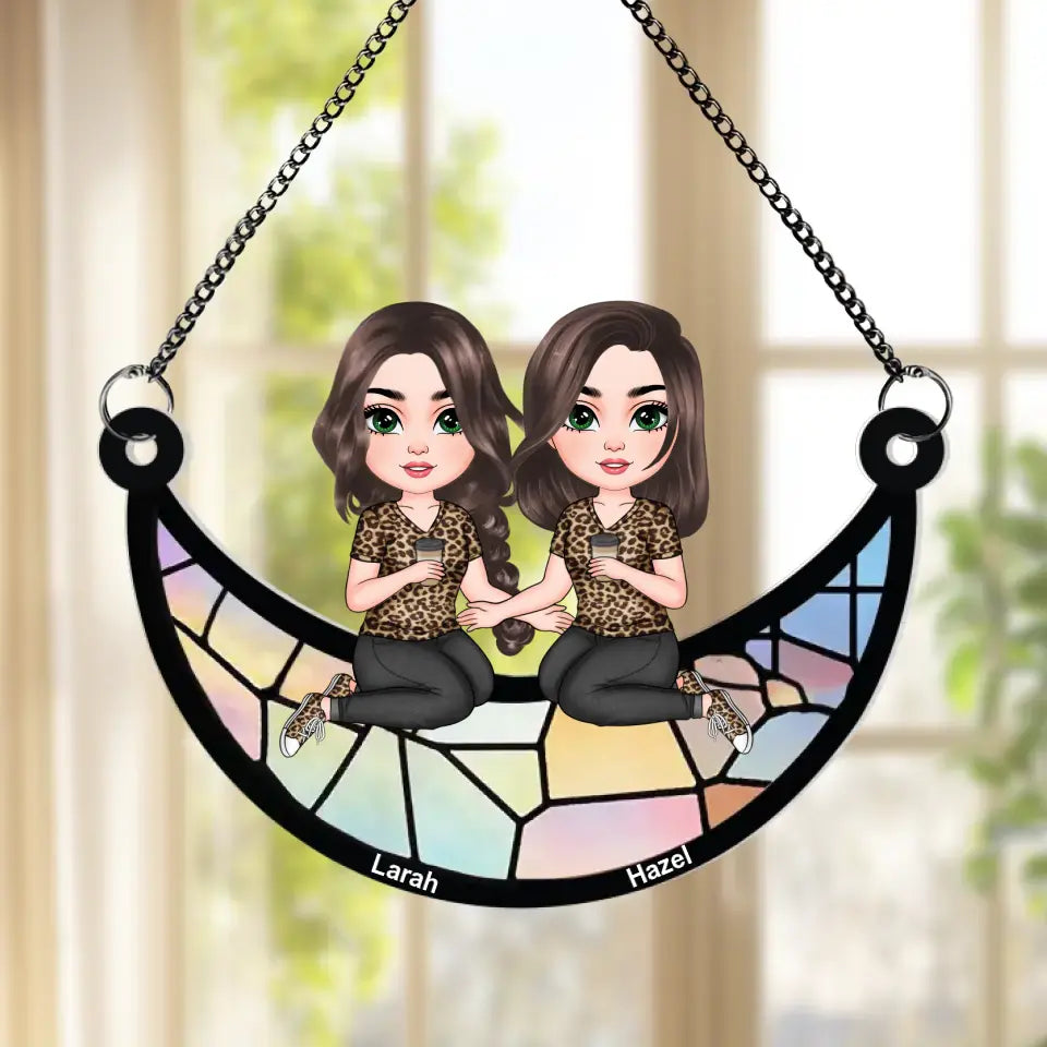 Best Friends Sitting - Personalized Custom Window Hanging Suncatcher - Gift For Friends, Besties AGCPD082